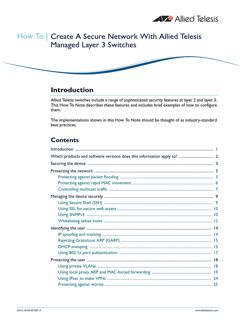 Allied Telesis switches include a range of sophisticated security features at layer 2 and layer 3.