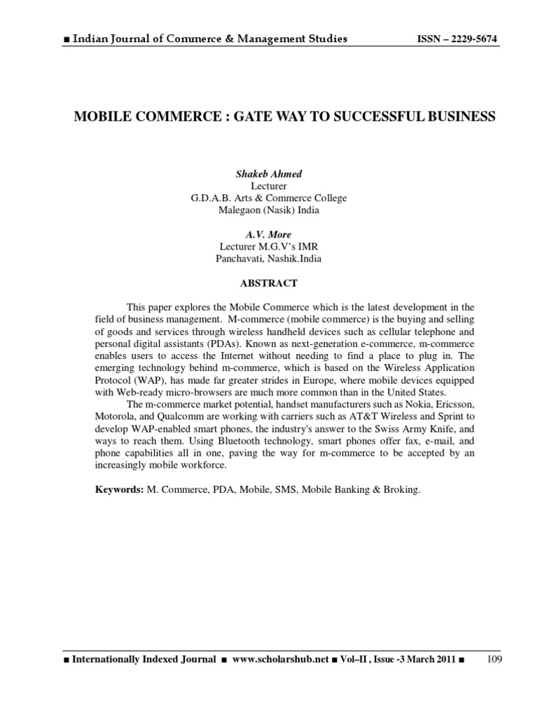 MOBILE COMMERCE : GATE WAY TO SUCCESSFUL BUSINESS