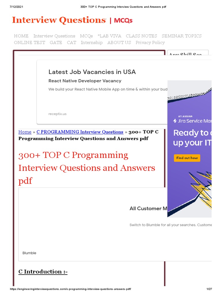 7/12/2021 300+ TOP C Programming Interview Questions and Answers pdf