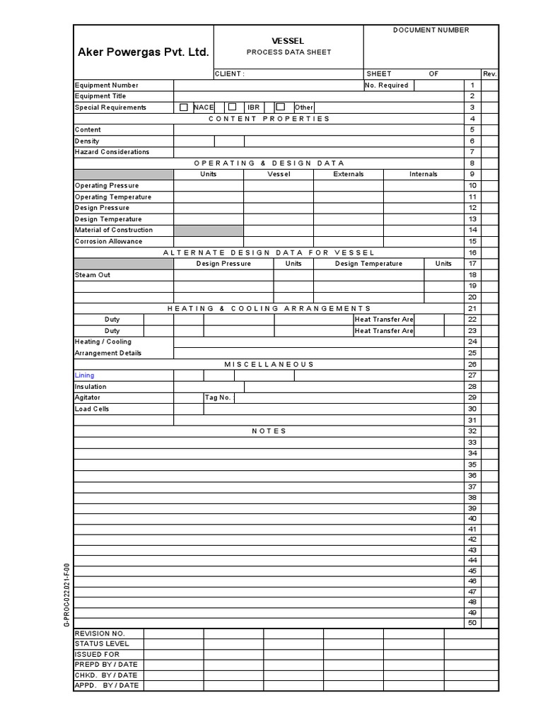 Aker Powergas Pvt. Ltd. PROCESS DATA SHEET