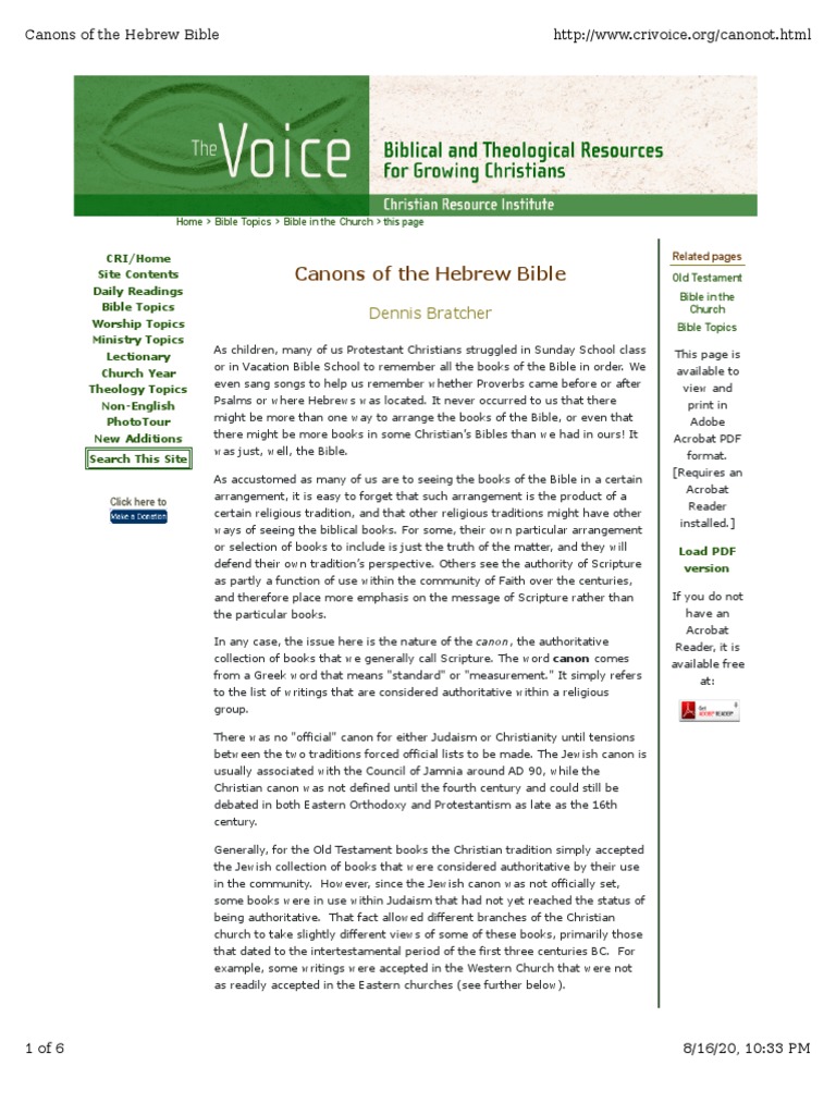 Canons of the Hebrew Bible http://www.crivoice.org/canonot.
