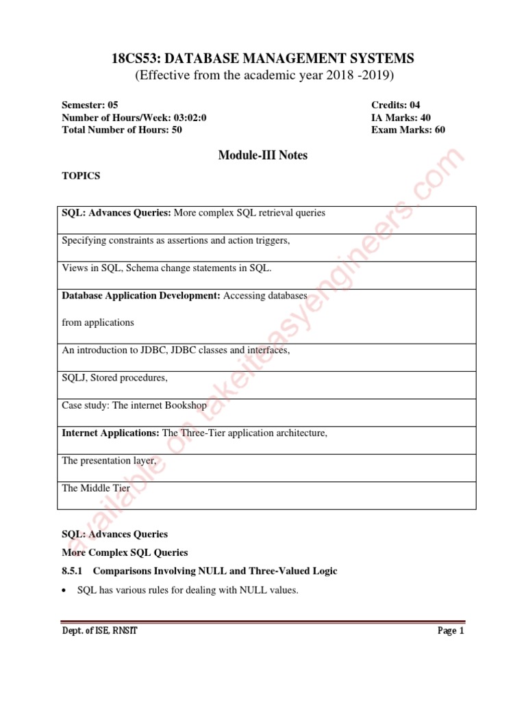 18CS53: DATABASE MANAGEMENT SYSTEMS