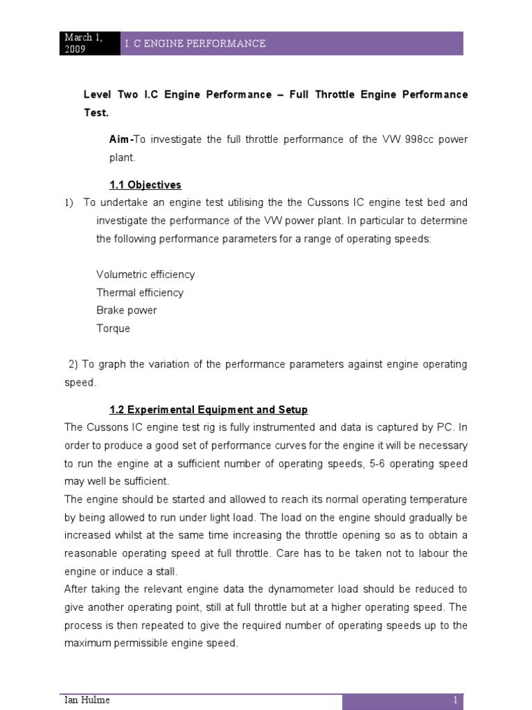 Aim-To investigate the full throttle performance of the VW 998cc power