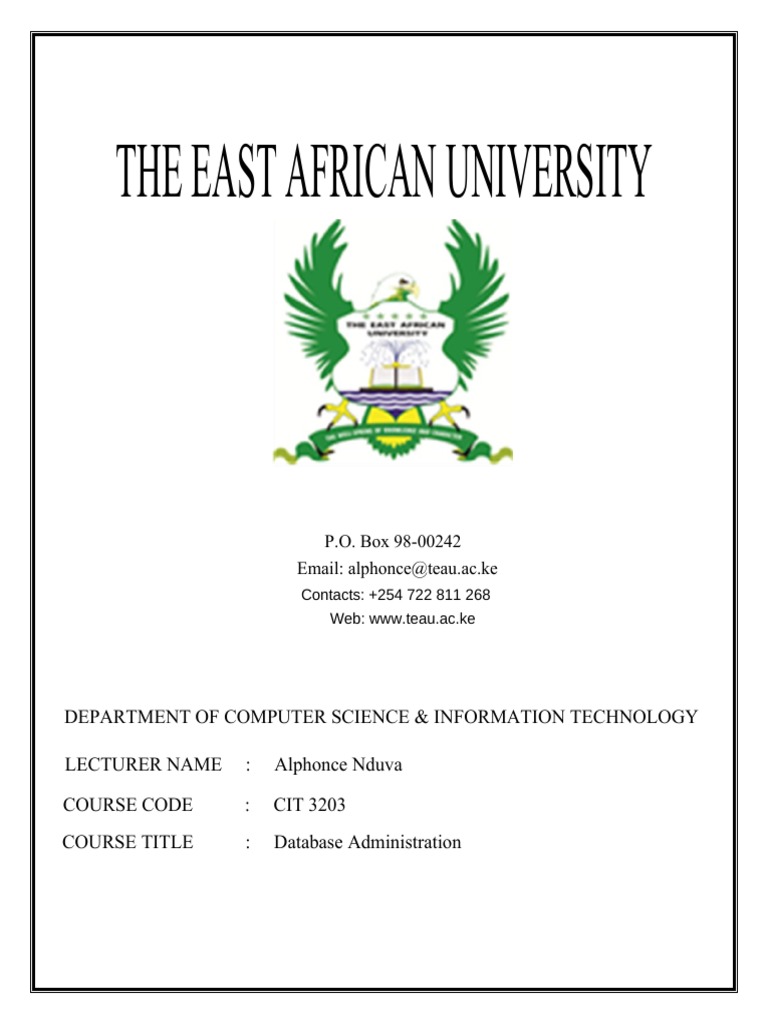 Purpose: To introduce the concept of rational database and the techniques and tools for