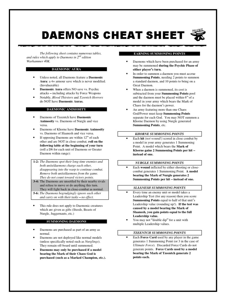 DAEMONS CHEAT SHEET