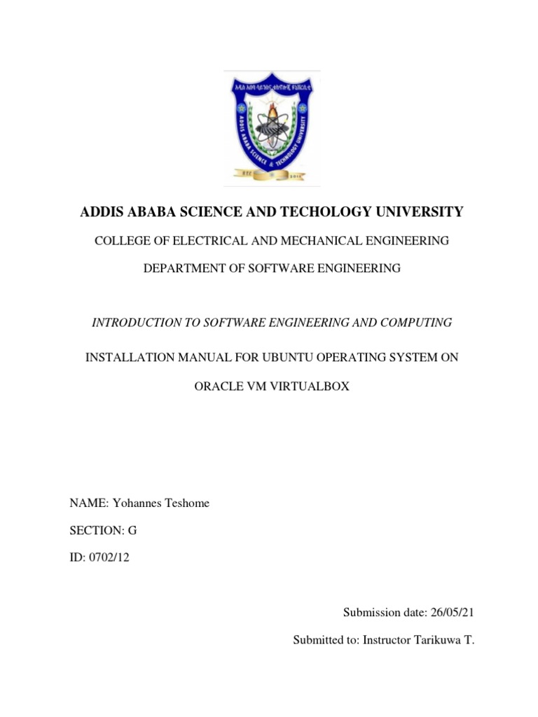 Installation Manual for Ubuntu Operating System on Oracle VM VirtualBox...