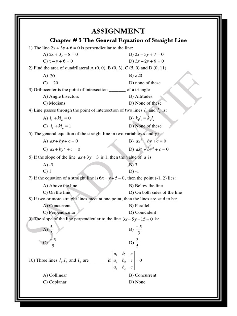 Chapter # 3 The General Equation of Straight Line