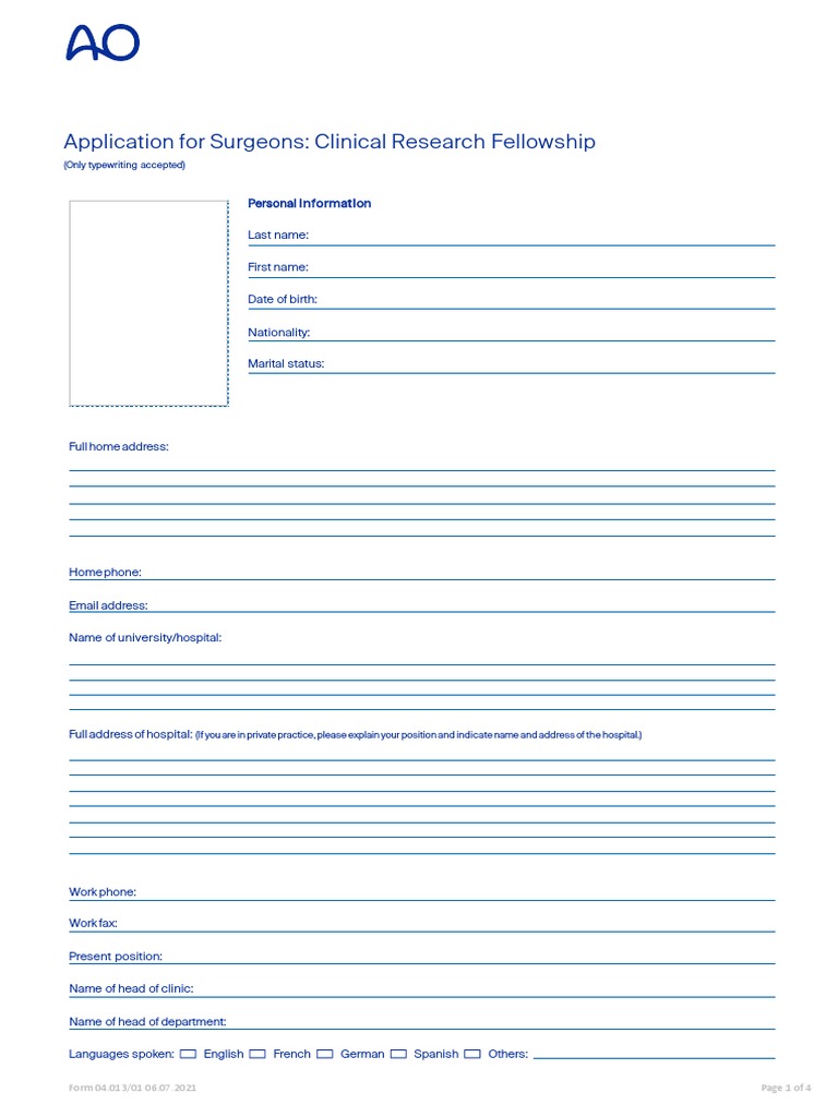 Have you completed a previous AO fellowship in an AO clinic? ☐ Yes ☐ No