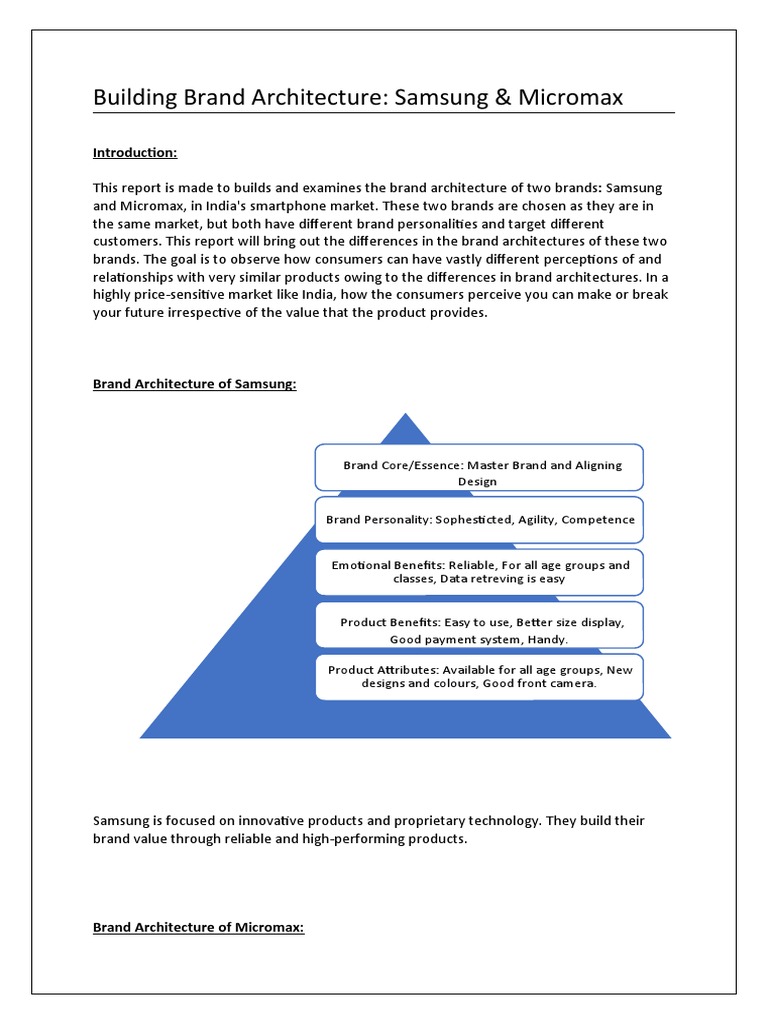 This report is made to builds and examines the brand architecture of two brands: Samsung