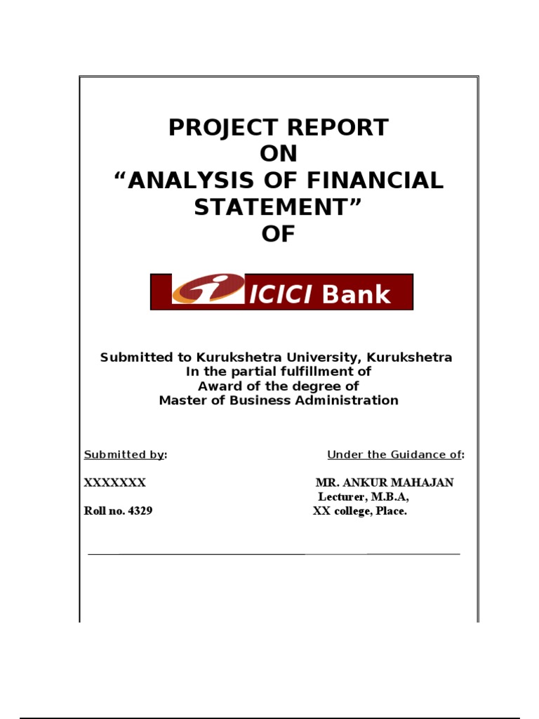Project Report ON "Analysis of Financial Statement" OF: Icici Bank