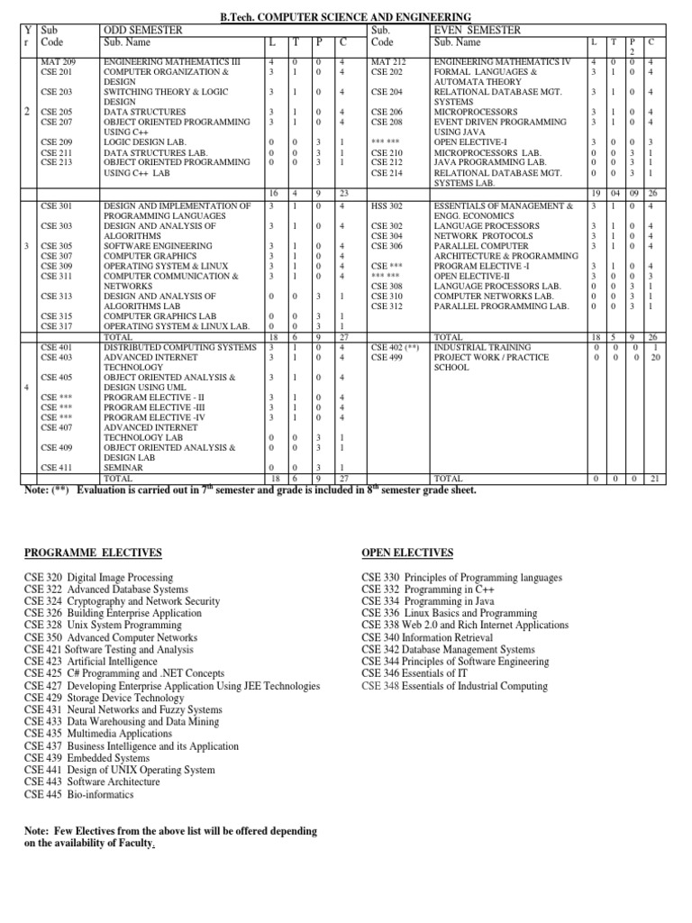 CSE 207 OBJECT ORIENTED PROGRAMMING 3 1 0 4 CSE 208 EVENT DRIVEN PROGRAMMING 3 1 0 4
