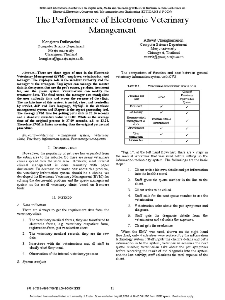 The Performance of Electronic Veterinary