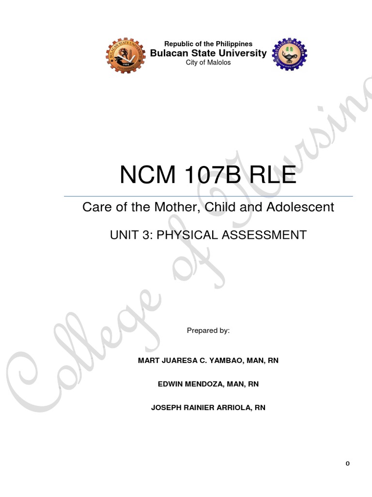 Assessment (NCM101). Unit 3 will discuss procedures on how to do a head to toe