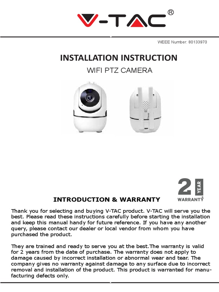 Thank you for selecting and buying V-TAC product. V-TAC will serve you the
