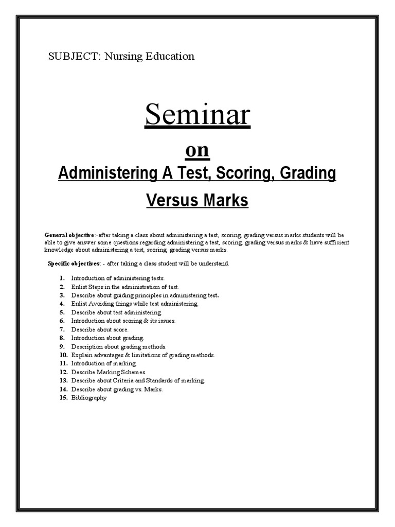 General objective:-after taking a class about administering a test, scoring, grading versus marks students will be