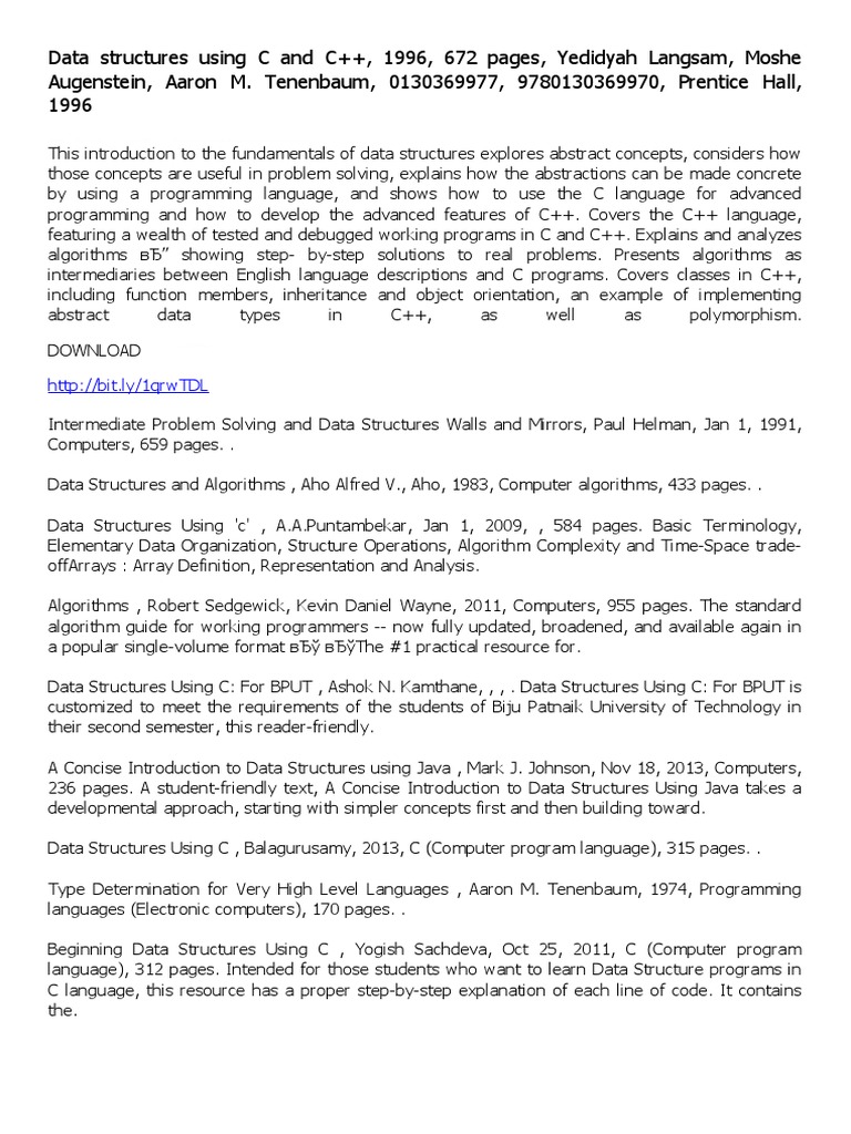 DOWNLOAD http://bit.ly/1yyLW0T http://goo.gl/Rf8t0 http://www.goodreads.com/search?utf8=%E2%9C%93&query=Data+structures+using+C+and+C%2B%2B