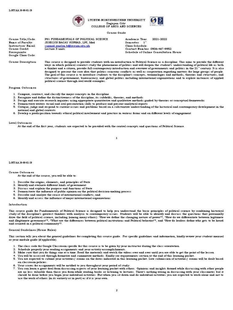 Course Description: This course is designed to provide students with an introduction to Political Science as a discipline. This aims to provide the different
