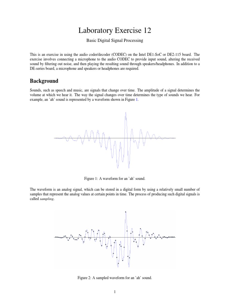 This is an exercise in using the audio coder/decoder (CODEC) on the Intel DE1-SoC or DE2-115 board. The