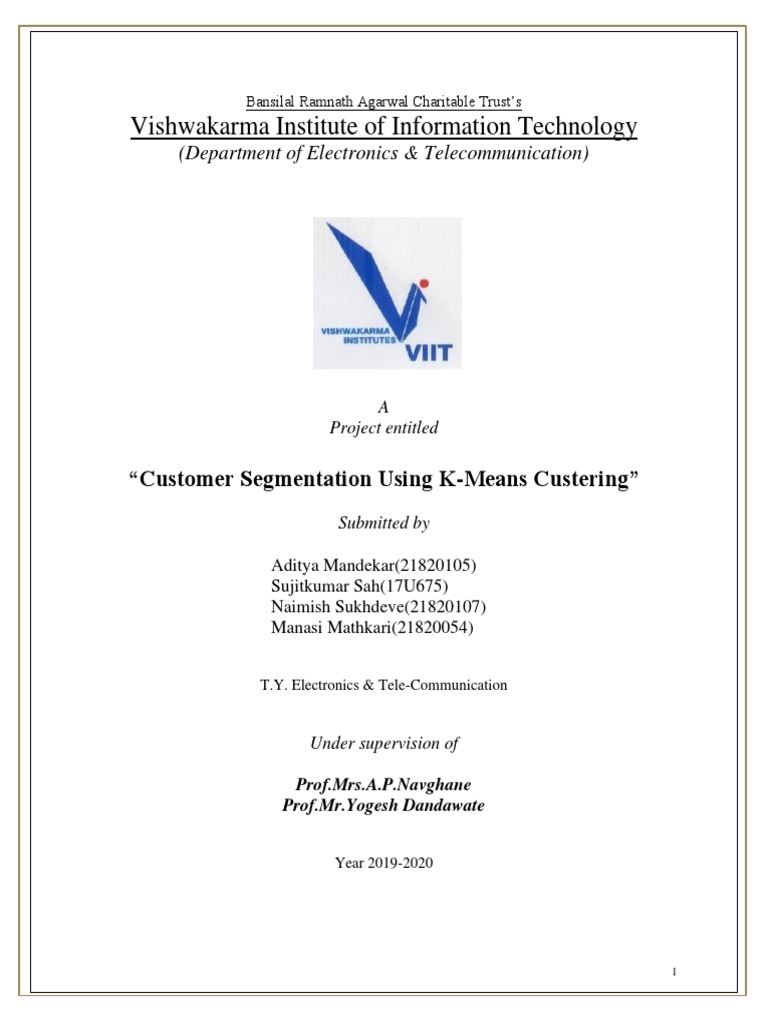 This is to certify that the project “Customer Segmentation Using K-means Clustering” has