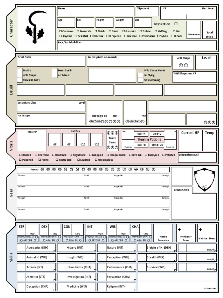 Druid Circle Sacred plants or Animals Wild Shape Level