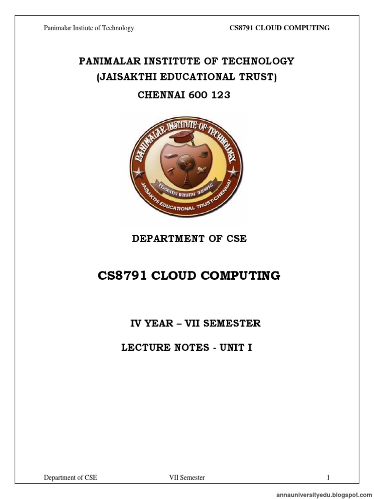 Panimalar Instiute of Technology CS8791 CLOUD COMPUTING