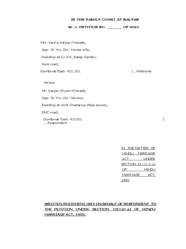 I, Mr. Samjay Shyam Kharade, the Respondent above-named, residing at 10/A Chaitanya Villas