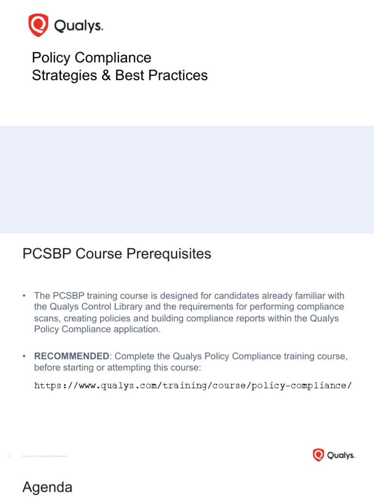 • RECOMMENDED: Complete the Qualys Policy Compliance training course,