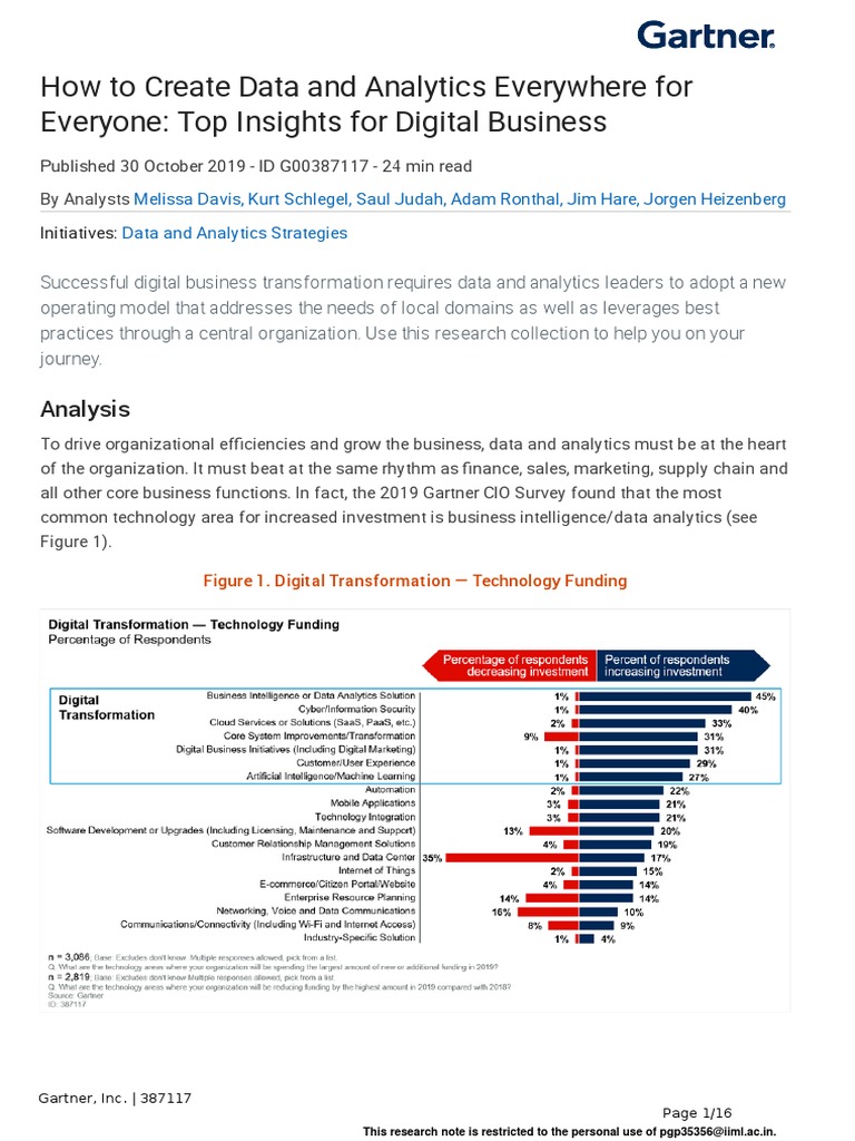 all other core business functions. In fact, the 2019 Gartner CIO Survey found that the most