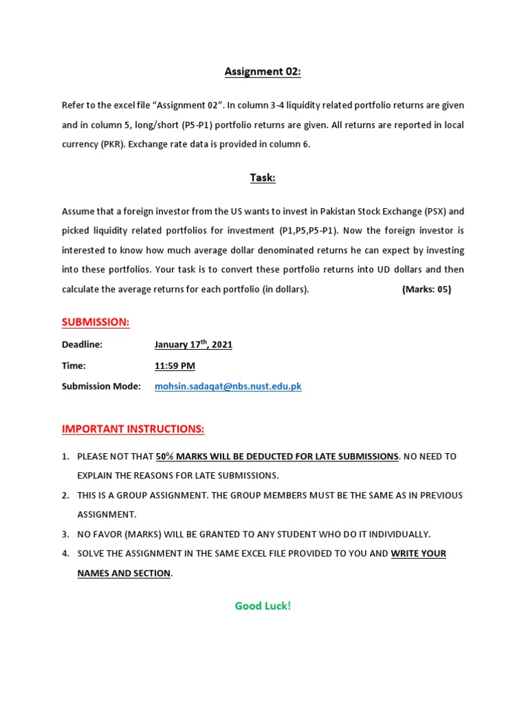 Refer to the excel file “Assignment 02”. In column 3-4 liquidity related portfolio returns are given