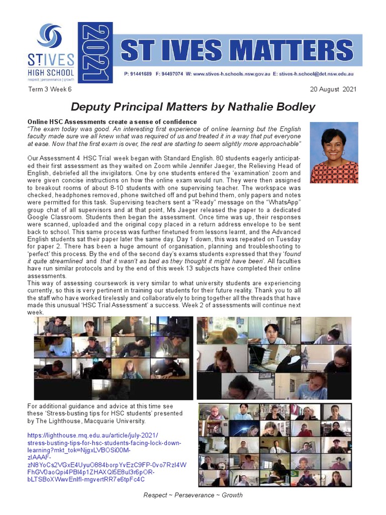 made this unusual ‘HSC Trial Assessment’ a success. Week 2 of assessments will continue next
