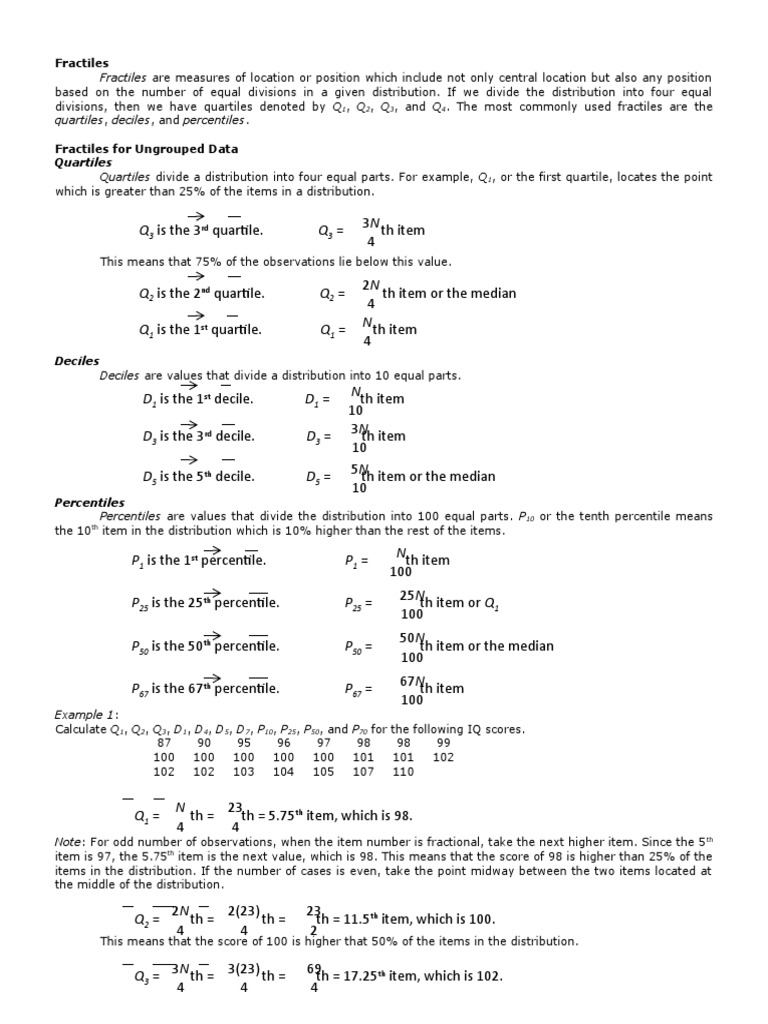divisions, then we have quartiles denoted by Q1, Q2, Q3, and Q4. The most commonly used fractiles are the