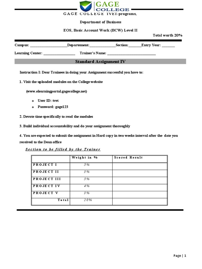 Instruction I: Dear Trainees in doing your Assignment successful you have to: