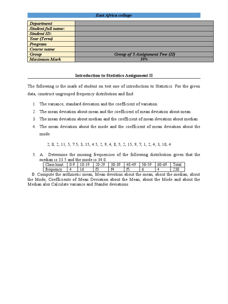 Introduction to Statistics Assignment II