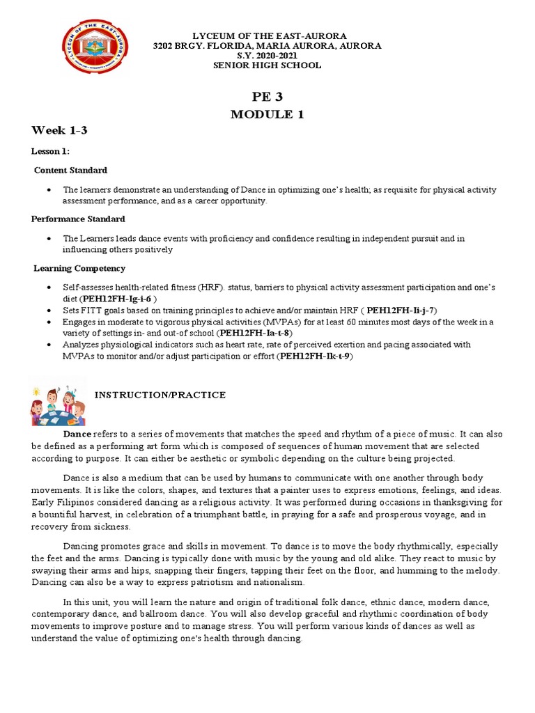 Q1Module 1, Week 1,2,3 PE 3 (Q1)