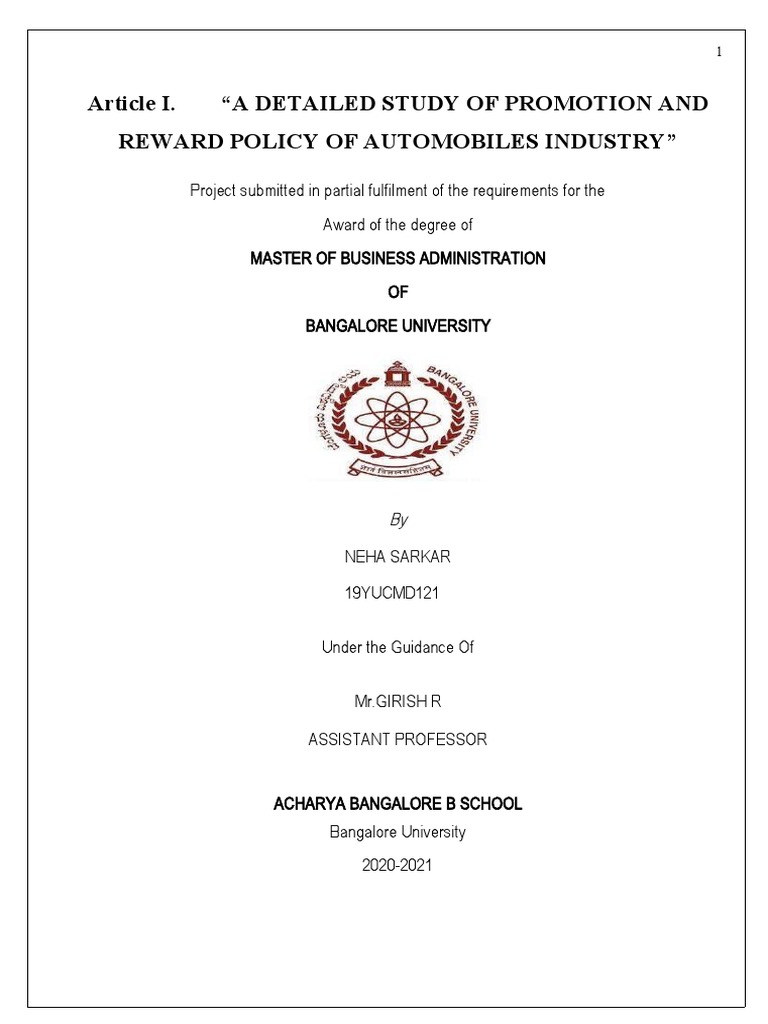 REWARD POLICY IN AUTOMOBILE INDUSTRY ” is an original work of Ms Neha Sarkar; bearing
