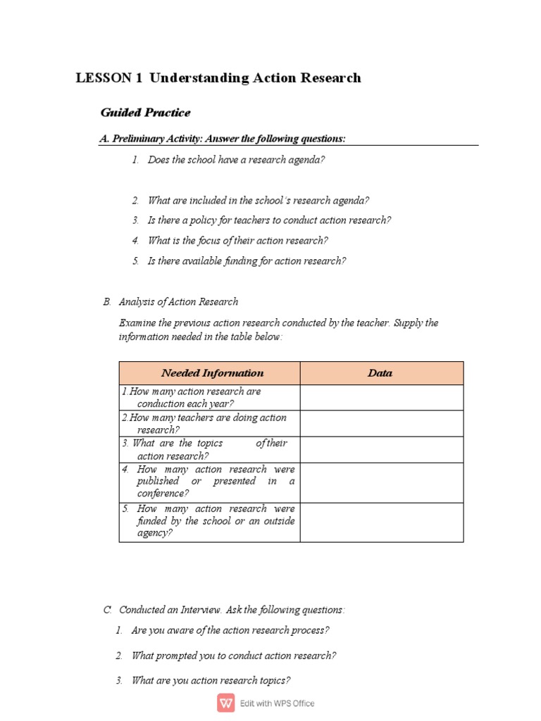 A. Preliminary Activity. Examine all the available action research conducted within the