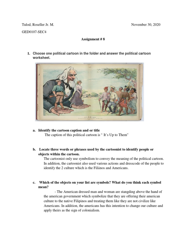1. Choose one political cartoon in the folder and answer the political cartoon