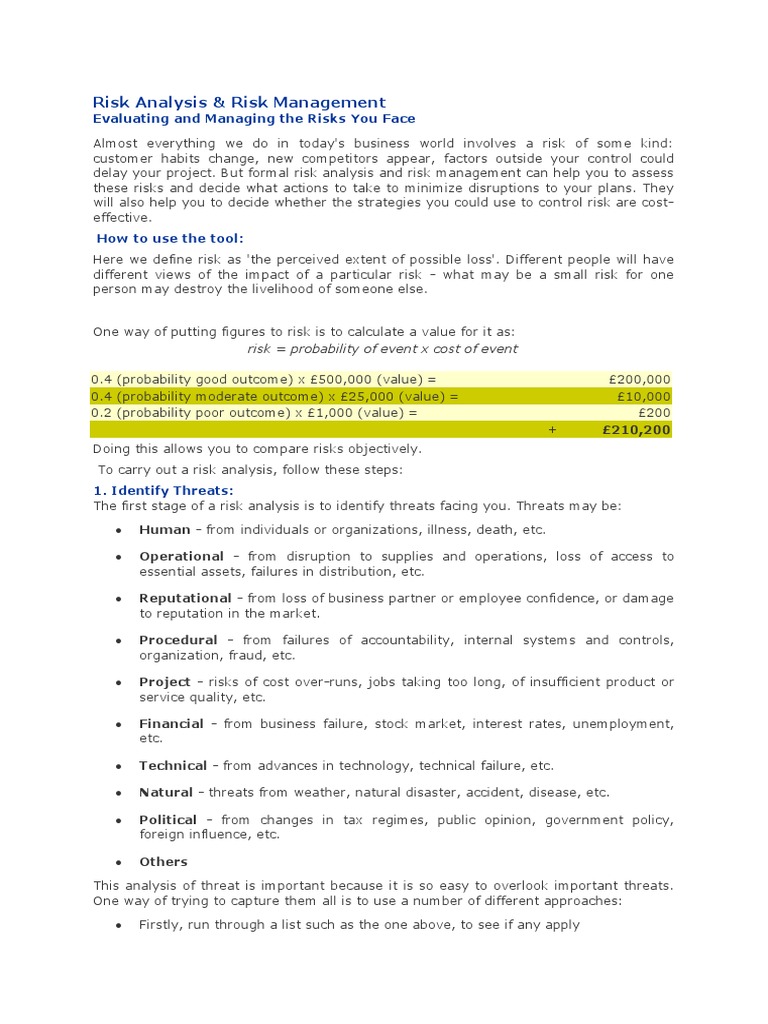will also help you to decide whether the strategies you could use to control risk are cost-