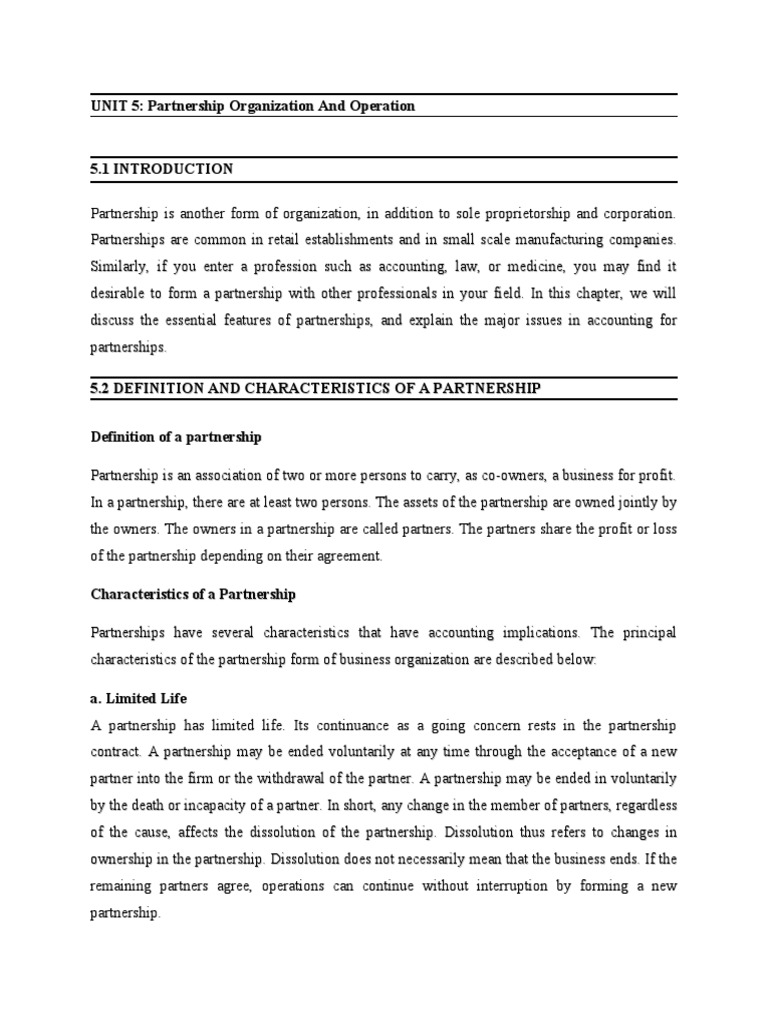 purpose of profit. It is characterized by limited life, unlimited liabilities, mutual agency, non