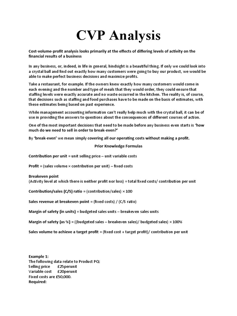 changes in volume (in particular), costs and selling prices, have on profit. However, its use is