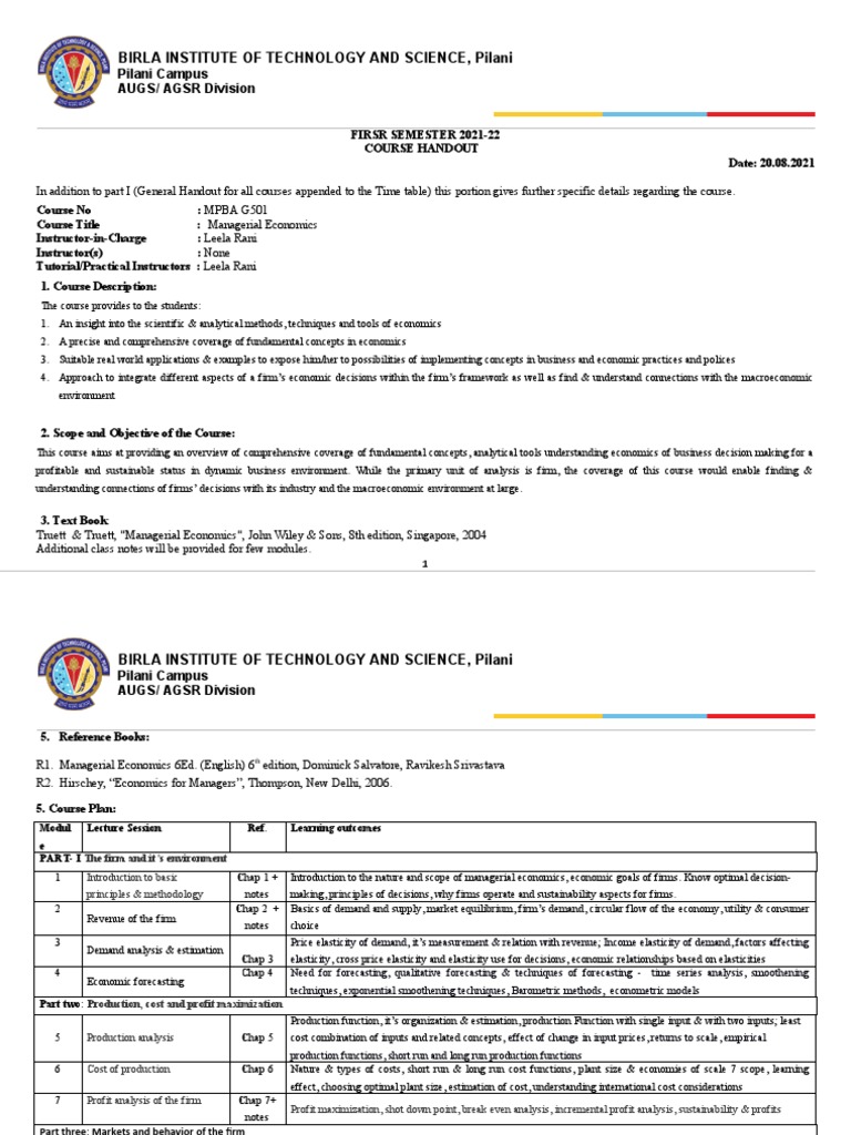 This course aims at providing an overview of comprehensive coverage of fundamental concepts, analytical tools understanding economics of business decision making for a