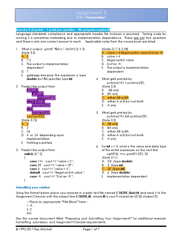 34 Send your source code file to the Assignment Checker with the subject line C1A3E3_ID, where ID is your