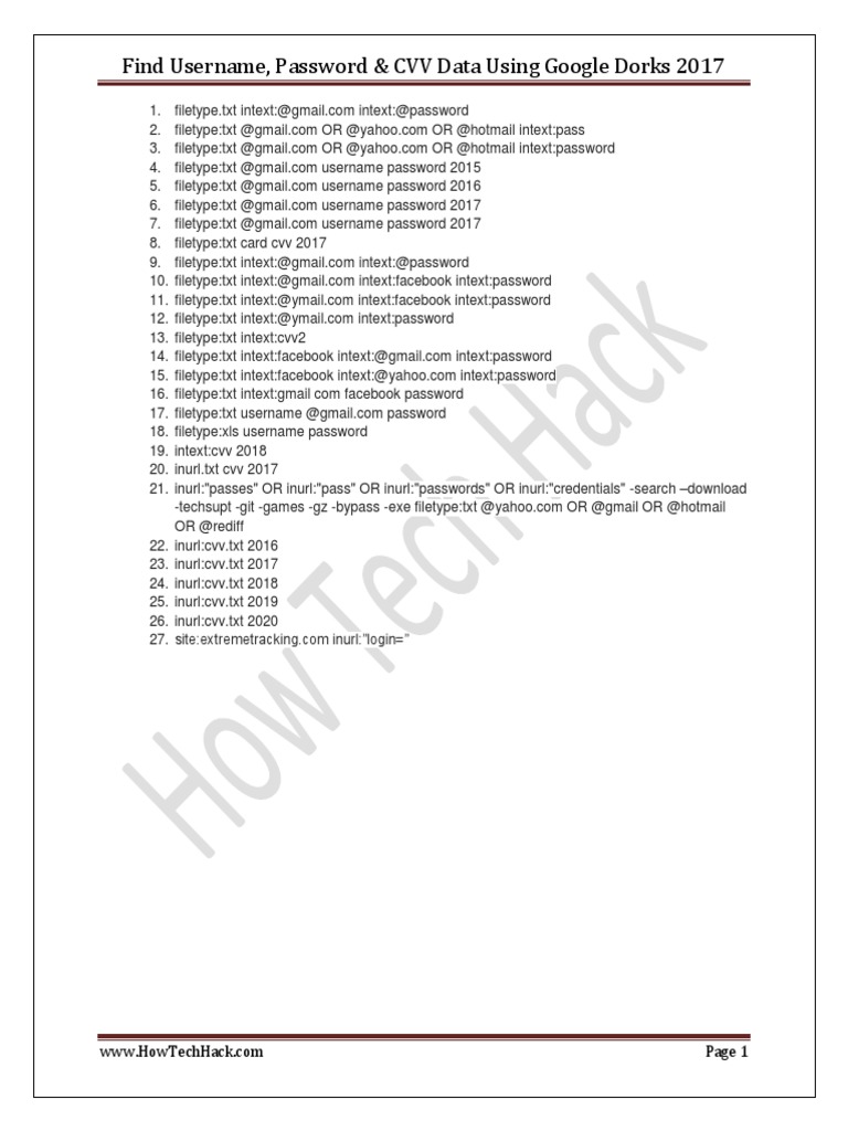 Find Username, Password & CVV Data Using Google Dorks 2017