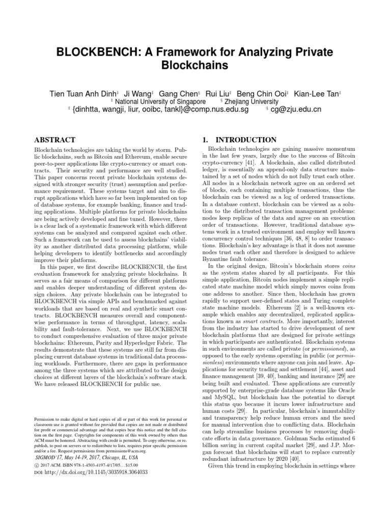 In this paper, we first describe BLOCKBENCH, the first In the original design, Bitcoin’s blockchain stores coins