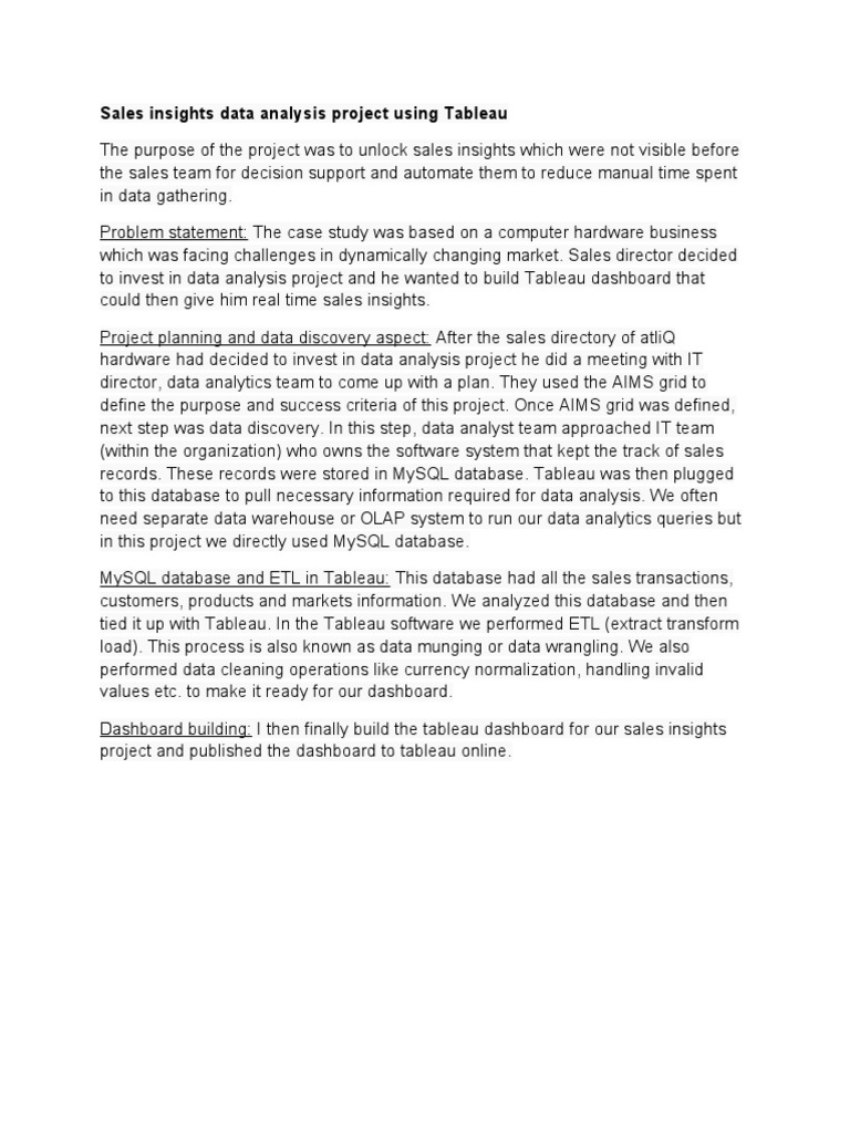 Dashboard building: I then finally build the tableau dashboard for our sales insights