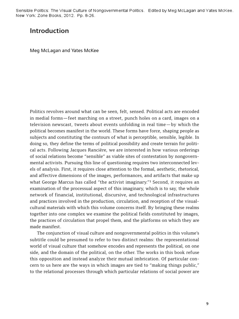 Yates McKee, Nongovernmental Politics (New York: Zone Books, 2007), p. 14.