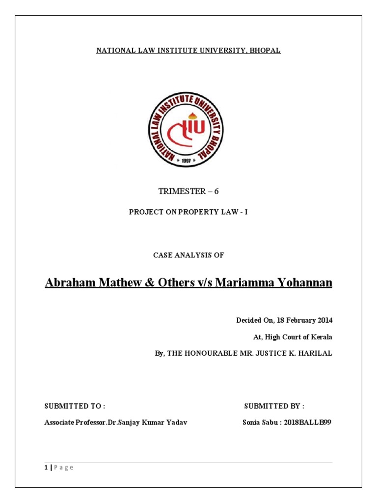 To analyse the case of Abraham Mathew & Others v/s Mariamma Yohannan.