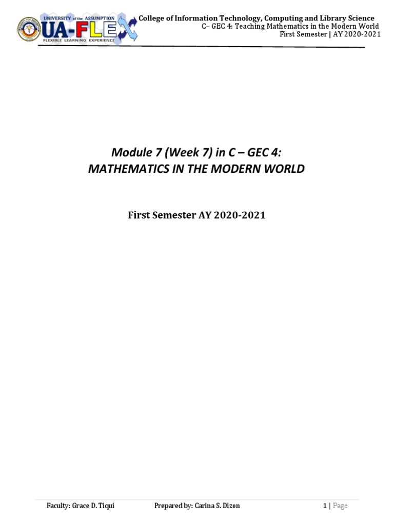 A. Course Code /Title : C-GEC4– MATHEMATICS IN THE MODERN WORLD