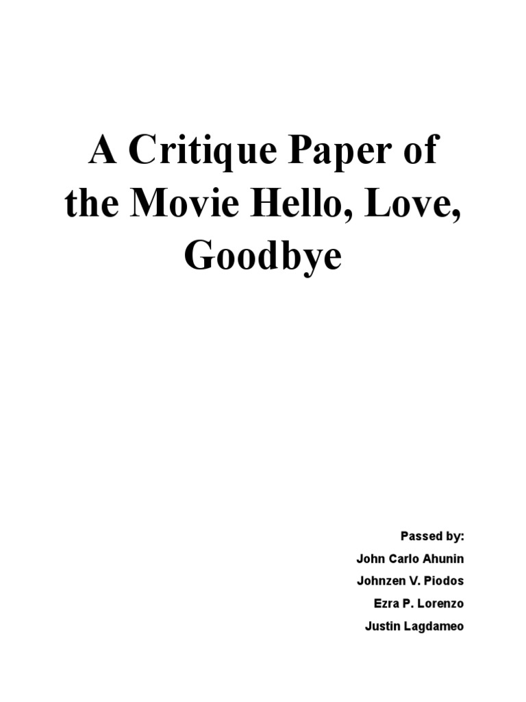 A movie entitled, “Hello, Love, Goodbye” was directed by Cathy Garcia-