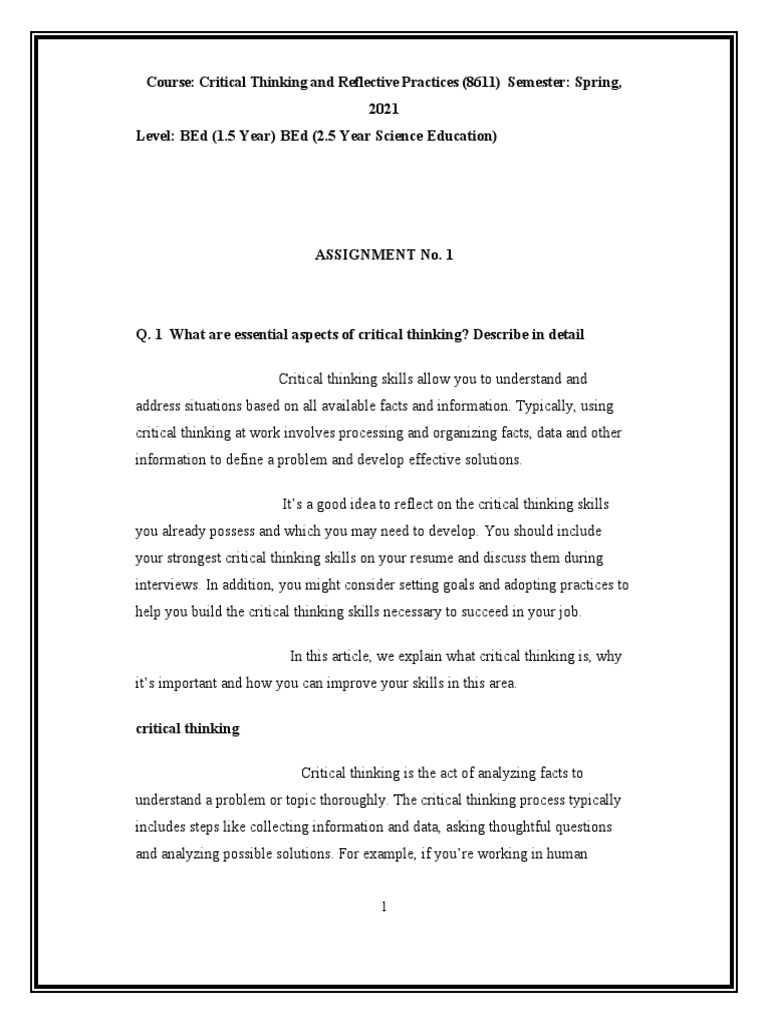 Q. 1 What are essential aspects of critical thinking? Describe in detail